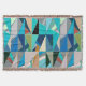 Cobertura abstrata moderna do lance do meio século, geométrico, composição no azul, turquesa, aqua e pontos mortos da terra, com as cinzas e o aqua que predominating