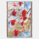 Agrupamento de amoras de arararuca vermelha ou de amoras-framboesas, ou de amoras-framboesas altas também conhecidas como "viburnum opulus" contra o céu azul e a folhagem castanha num dia ensolarado de outono. Presentes e impressões para diversão e bom humor