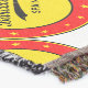 Crachá de Barcelona com bandeira de Espanha, forma arredondada. Emblema de Barcelona. Marca de Barcelona. Selo de Barcelona España.