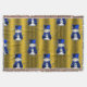 Um padrão de Natal bonito e colorido com neve vestida de chapéu de veludo azul e coletes, sobre um fundo festivo de ouro com estrelas de ouro para adicionar um toque na moda e caprichoso às suas decorações natalinas este ano.