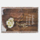 Os recém-casados vão desfrutar do confronto sob a personalização das Boots do Cowboy, Daisies e Horse Bit Country. Pode ser com os nomes da noiva e da data da cerimônia de noiva e casamento criar um presente de guardiã para uma festa de noivado, chá de panela ou casamento. Este cobertor de casamento sobre o tema equestre rustico apresenta uma fina fotografia floral de um par de botas de cowboy ocidentais de couro castanho, buquê de flores de margarida amarela e branca, pedacinhos de cavalo com rédeas de couro e colar de pérolas brancas com um fundo de madeira de celeiro de couro castanho.