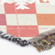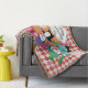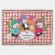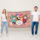 Belo cobertor de natal apresenta três adoráveis pinguins em skates de gelo, suéteres, lenços de risca e chapéus de inverno em um fundo de branco, vermelho, laranja e rosa, uma área rosa sólida com flocos de neve brancos e uma laranja profunda com centro de bolinhas branco. Você pode personalizar facilmente com seu nome de família!