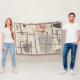 Esta cobertura abstrata moderna do lance do meio século caracteriza uma réplica de um tecido dos anos 50 do vintage. O fundo é ecru com linhas do preto e do ouro. O tecido igualmente caracteriza formas cinzentas e cor-de-rosa da arte moderna. É uma explosão do passado! Este é o design perfeito para qualquer um que ama artigos com uma sensação retro.