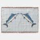 Poucos peixes são incrivelmente bonitos que o espadim azul — e nem muitos peixes são maiores. O espadim azul é o maior dos espadins do Atlântico e, sério, um dos maiores peixes do mundo. Como em algumas espécies, a fêmea é muitas vezes um pouco maior que o macho. As mulheres podem crescer até 14 pés de comprimento e podem pesar mais de 1.900 libras, embora a média corra mais em torno de 11 pés de comprimento e 300 libras. Um azul profundo sobre o topo e o branco-prateado, com uma barbatana dorsal pronunciada e uma mandíbula longa, letal, em forma de lança (que alguns chamam de lei), os espadins azuis são um dos peixes mais facilmente identificáveis e reconhecíveis do mundo. Marlins é renomado por sua incrível resistência em uma luta quando estão viciados, o que os torna um favorito troféu de grandes pescadores de caça. Embora possa ser dito de praticamente qualquer peixe super grande, não consigo imaginar que haja muito mais emocionante para o ávido anjo do que pegar um desses gigantes e vê-lo quebrar a água na luta. Este design homenageia mais este peixe majestoso do que os pescadores que o procuram. Para este maravilhoso cobertor, dois espadins azuis se encaram, saltando de um mar de xadrez coordenada por cores, fazer esta excelente adição à sua piscina ou decoração da casa de praia.