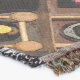 Esta cobertura contemporânea do lance caracteriza um teste padrão abstrato de repetição de uma garrafa vermelha e preta ereta do vinho de Borgonha ao lado de três mais garrafas em um marrom, em um ouro e em uma cremalheira de madeira amarela do vinho. Um fundo alaranjado rústico da parede de tijolo termina a composição.
