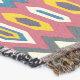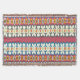 Fileiras do lozenge e da linha simples e complexos padrões nas cores que são predominante vermelhas, pretas, amarelas e azuis, em um cobrir vermelho do fundo o tecido.