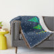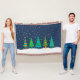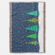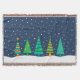 Um design geométrico moderno de cinco abeto no verde, a turquesa e o ouro amarelam. O céu é marinho com neve de queda branca.