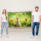 Coelhos. Design da arte da beleza do coelhinho da Páscoa pequeno bonito no prado. Flores do primavera e grama verde. © dos raios de sol e ® Bigstock® - todos os direitos reservados.