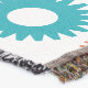 Um padrão atrativo formado por uma disposição quadrada repetitiva de 16 rodas de cor diferentes num palete de cores atraentes.