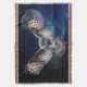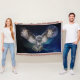 Animais selvagens surpreendentes. A coruja de grande cinza ou a coruja de grandes cinzas são uma coruja muito grande, documentada como a espécie a maior do mundo de coruja pelo comprimento. Coruja em vôo, céu escuro com estrelas e lua azul.