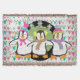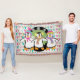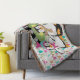 Feliz Natal dos Pinguins, o cobertor apresenta três pinguins bonitos em algemas, chapéus de inverno e cachecóis em um fundo branco com cordas de luzes coloridas, uma faixa de preto sólido com flocos de neve brancos e um centro verde com bolinhas brancas.