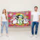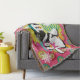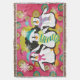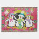Flocos de neve e orbos Penguins de feriado exibem cobertor com três pinguins bonitos em chapéus de inverno e cachecóis em um fundo de rosa quente com órbitas de flocos de neve, uma faixa de mostarda pontilhada de polca, e um centro negro com bolinhas brancas e flocos de neve!