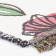 Flores e folhas delicadas com forma aquosa e detalhes com tinta. Paleta rosa e verde.