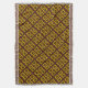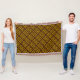 Este cobertor apresenta um padrão geométrico de abstrato para estampas em quadrados de ouro, amarelo, marrom e diamante preto