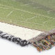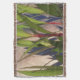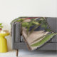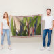 O design retrô de ZoeSPEAK neste cobertor do lance foi criado de uma fotografia original de folhas longas e finas verdes à luz do sol do final da tarde, lançando sombras azuis na parede do stucco atrás. As plantas são petúnias mexicanas, com caules avermelhados. O humor é sonolento na tarde de verão de tempos anteriores.