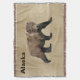 Possui uma pintura digital de um Urso Kodiak em um pergaminho neutro, ou papel antigo, fundo. O texto personalizável lendo "Alaska" também é exibido. O Urso Kodiak (Ursus arctos middendorffi), uma subespécie do urso pardo, ou grizzly, são os maiores ursos do mundo. Um macho adulto pode ter mais de 10 pés de altura quando ereto sobre as pernas traseiras e pesar mais de 1500 libras - uma visão verdadeiramente segura. Um urso no Bismarck, o zoo de Dakota do Norte, estimava-se ter pesado até 2400 libras. Os ursos vivem nas ilhas do Arquipélago Kodiak do Alasca. Atualmente, há cerca de 3500 ursos Kodiak e o seu número está a aumentar devido ao estado geralmente excelente do seu habitat, incluindo peixes suficientes para comer. Eles são chamados de takuka-aq, em Alutiiq, a língua das pessoas nativas daquela área. Acredita-se que os ursos tenham sido isolados lá desde o final da última Era do Gelo há mais de 12.000 anos. Embora sejam o maior carnívoro terrestre, a sua dieta inclui grandes quantidades de erva, outras plantas e bagas. Atualmente, há cerca de 3500 ursos Kodiak e o seu número está a aumentar devido ao estado geralmente excelente do seu habitat, incluindo peixe suficiente para comer. Devido à abundância de recursos comidas, os ursos Kodiak têm intervalos mais pequenos do que quaisquer outros ursos pardos e não têm necessidade de defender territórios. As pessoas Alutiiq caçavam ursos para comidas, roupas e ferramentas. Setas, lanças e excelente de coragem eram necessárias para caçar equipamento. As cabeças de ursos costumavam ser deixadas no campo como sinal de respeito ao espírito dos ursos.