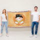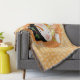 Festa de Natal bonito Laranja Floco de Neve Snowman lança cobertor com um fundo de laranja com muitos flocos de neve brancos, uma rodada de bolinhas brancas em laranja, e um adorável boneco de neve com nariz de cenoura, chapéu preto, e um cachecol riscado e flocos de neve brancos!