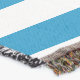 Listras azuis e brancas largas corajosas do deckchair nos artigos home para evocar memórias do beira-mar.