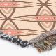 Padrão geométrico "atômico" moderno do século médio de anéis elípticos concêntricos - castanho de chocolate, bege e coral sobre fundo de pêssego mole