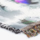 Miniatura Schnauzer A arte de Natal é bela numa grande variedade de mercadorias de férias. Este pequeno mini deitado em frente a uma árvore decorada em floresta, com ornamentos no chão ao seu lado, que ele escolheu da árvore de Natal!