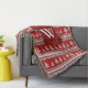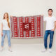 O estilo vermelho e branco da feira nórdica inspirou-se num cobertor confortável e confortável, com uma letra monográfica branca, personalizada, num quadrado decorativo vermelho de morango no centro do cobertor.