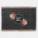 Este belo e elegante design apresenta rosas vermelhas e cor-de-rosa contra um fundo de alto contraste de bolinhas brancas a preto. No centro está um dentro de monograma branco de um círculo preto dourado. Você pode personalizar esta design para si mesmo ou para um amado mudando o monograma.
