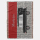 Mortican Woven Blanket em fundo vermelho com cinza e creme e design de coração desenhado pelo artista. Faz um presente de apreciação excelente para qualquer necrotério.