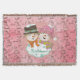Bonito feriado de Natal joga cobertor com um fundo rosa vintado com pequenos bonecos de neve e flocos de neve e um círculo polka rosa e branco pontilhado com um boneco de neve e neve vestido com chapéus de cima e chapéu de inverno e escaravelhos com texto que lê Deixar nevar!