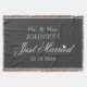 O Sr. elegante e a Sra. recem casados jogam a cobertura para o newlywed. A ideia romântica do presente de casamento para recentemente weds/noivo do recem casados e o casal da noiva/marido e da esposa. Inclua a data do casamento. Tipografia elegante do roteiro. Decoração home à moda.