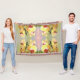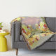 O lindo padrão do HomeWare neste cobertor de lama foi feito a partir de uma fotografia original de orquídeas amarelas à luz do sol da tarde. As flores das orquídeas têm pétalas amarelas claras com centros vermelhos a roxos. Um caule verde-escuro sopra pelo centro das flores. O fundo pastel é feito de tons de mistura rosa em verde-claro. Algumas folhas verdes claras de uma planta única podem ser vistas em um canto. Quando a foto é combinada para fazer o padrão, o design floral torna-se um jardim de orquídeas com o brilho rosa do sol da tarde no centro.