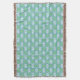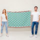 Um cobertor muito bonito, com um padrão de motivos florais Blue Periwinkle em White, dentro de um hexágono decorativo, tudo sobre fundo Verde. Parte da coleção Posh e Painterly 'Periwinkle Patch'.