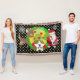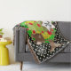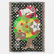 Papais noeis e Reindeer de Natal jogam cobertor, colorido, divertido, fofo e alegre! Apresenta Santa Clause vestido com seu terno vermelho e boné com um saco de brinquedos pendurados nas costas, uma árvore de Natal com bolas vermelhas, renas marrom bonitinhas, flocos de neve e bolinhas brancas sobre um fundo de preto, verde e amarelo. Há também uma faixa de forma estelar que você pode personalizar com o seu monograma inicial!