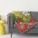 Papais noeis e Reindeer de Natal jogam cobertor, colorido, divertido, fofo e alegre! Apresenta Santa Clause vestido com seu terno vermelho e boné com um saco de brinquedos pendurados nas costas, uma árvore de Natal com bolas vermelhas, renas marrom bonitinhas, flocos de neve e bolinhas brancas sobre um fundo de vermelho, verde e amarelo. Há também uma faixa de forma estelar que você pode personalizar com o seu monograma inicial!