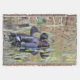 Um par de pato selvagem ducks a natação em uma lagoa com reflexões do folhagem de outono