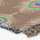 Jogue cobertor em um impressão de têxtil de penas de pavão, executado no Adobe Illustrator em uma Photoshop - penas de bronzeamento de camelo, com um olho em tons de chocolate, caramelo, verde de jade e azul de cobalto, em um rico fundo marrom de chocolate