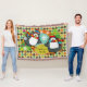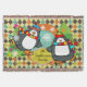 Belo cobertor de natal apresenta dois pinguins adoráveis em skates de gelo, escarpas, chapéus de inverno e árvores de Natal decoradas em um fundo de castanho, creme, aqua, laranja e argyle de mostarda e um centro azul aqua com bolinhas brancas e flocos de neve. Você pode personalizar facilmente com seu nome de família!