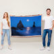 Manta Reflexo do nascer sobre as pilhas oceânicas e marí