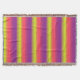 Uma réplica de três cores brilhantes com stripe dogtooth, jogada em verde limão, roxa e rosa, por Sarah Trett. Pareceria excelente em um quarto, sala de salão.
