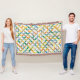 Quartos circulares repetidos cortaram o estilo, modelado, jogando em cores tonais quentes de amarelo, laranja, castanho, verde-oliva, cinzas e azul em um fundo branco por Sarah Trett. Pareceria excelente em um quarto, sala de salão.