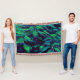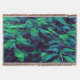 O padrão de tecido deste cobertor de lente do HomeWare foi criado de uma fotografia original de uma árvore de pontas reais. Algumas folhas tropicais da árvore estão à luz do sol, em verdes amarelos brilhantes. Outros estão na sombra, em tons de azul do aqua ao fundo do mar, com realces roxos. O fundo é quase preto. O design tem uma textura geral do tecido.
