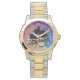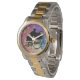 Mantendo Relógio do Tempo e das Notas de Música. Um baterista toca um tambor sobre um arco-íris de notas musicais psíquicas com números de ouro metálicos leves e as palavras "manter o tempo". Um Music Watch para seu músico percussionista ou amante de música favorito.
