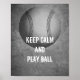 Este poster de aspas calmas tem uma bola de beisebol em cinzas e branco com texto que mantém a calma e joga bola para decoração de arte em parede em casa ou no escritório.