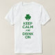 Camisa do dia de St Patrick com trevo irlandês e slogan engraçado - mantenha a calma e a beba sobre - paródia do poster britânico da propaganda de WWII.