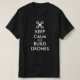 Fique calmo e construa drones com camisa preta. Personalize com seu próprio engraçado mantenha calma e carregar em mim. Presentes legal para fabricantes de drones e pilotos.