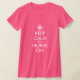 Mantenha a calma e nutra-a no t-shirt para mulheres. Ideia bonito para cuidadors, serviços de salvamento e enfermeiras das urgências. Criar seu próprio engraçado mantêm a calma e continuam a paródia para a semana da enfermeira ou nutrem o dia. Personalize-o com seu próprio texto. A cor do fundo/camisa pode ser mudada.
