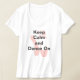 Camiseta de dançarina excelente, com uma silhueta rosa de calçados de dedos balés. O texto negrito da cinza escura, através das calçados, diz Mantenha Calmo e Dance Ativado. Personalizar para alterar o texto para ler de forma diferente. Excelente para qualquer dançarina de balé etária, basta escolher o tamanho e estilo que você quer que esse design esteja ativo.