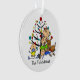 Um adorável ornamento acrílico de palito de Natal ilustra a frente com uma figura de palitos mãe lendo para uma garotinha, menino de criança com pacificador, menino de bebê dormindo, e cachorro de família em frente à árvore decorada de férias. Ele também tem uma área que você pode adicionar seu nome de família antes de fazer o pedido. O ornamento apresenta o mesmo design com uma área que você pode facilmente personalizar para dizer Natal de 2014 ou o ano atual. Esta bonitinha de bonitinha família de Natal ornamento acrílico é um presente de excelente para você mesmo ou para os avós e outros familiares e amigos!