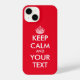 Mantenha calma e carregar no caso do iPhone 14 personalizado. Faça sua própria citação personalizada, mantenha calma. Cor de fundo vermelha ou personalizada. Design de modelo engraçada com tipografia moderna e coroa.
