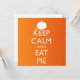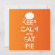 Divertido para as férias. MANTENHA CALMA E COMA PIE com uma silhueta de abóbora. Design baseado na moralidade britânica de 1939, poster "Mantenha calma e continue".