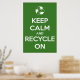 Uma reviravolta ecológica sobre um poster de motivação britânico WW2 antigo em verde com texto branco e símbolo de reciclar.
